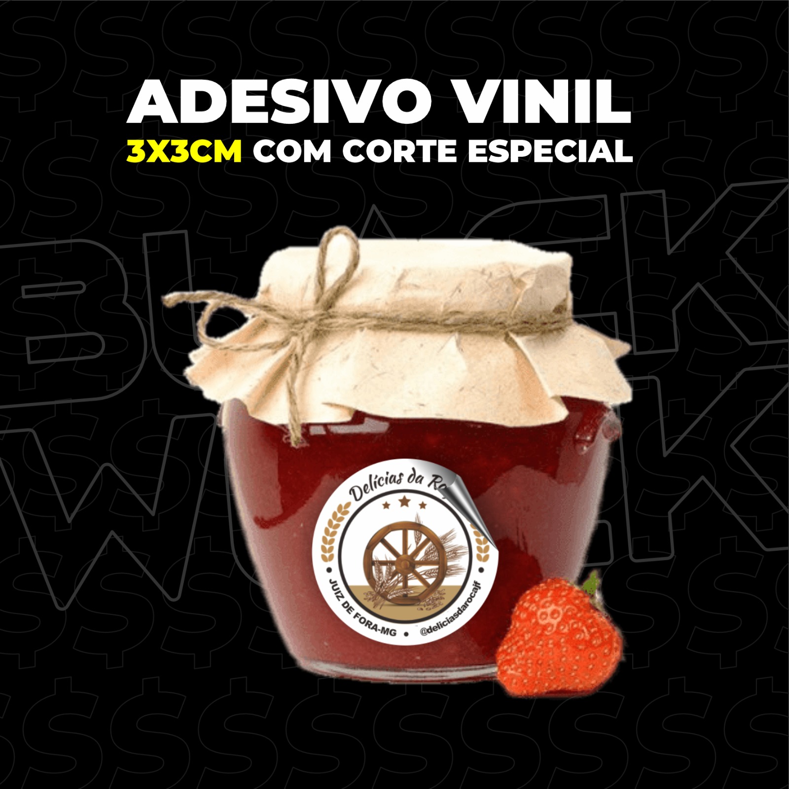 Adesivo Rótulo para produtos - 3x3cm, CORTE ESPECIAL, vinil adesivo - 3000un