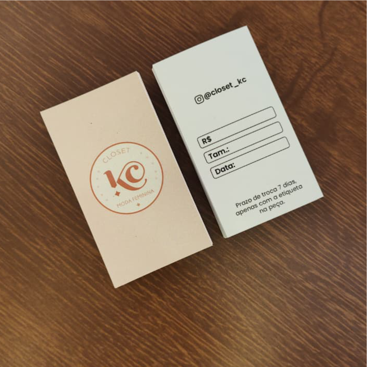 Esse cartão vai muito além da função tradicional: pode ser usado como cartão de visitas, cartão fidelidade, tag para produtos, cartão de agendamento, convite para eventos, ingressos e muito mais. Sua grande vantagem é a flexibilidade da tiragem, que começa em 100 unidades e vai até 300 unidades, tornando-o perfeito para quem precisa de materiais personalizados em menor escala, sem perder a sofisticação e o profissionalismo.