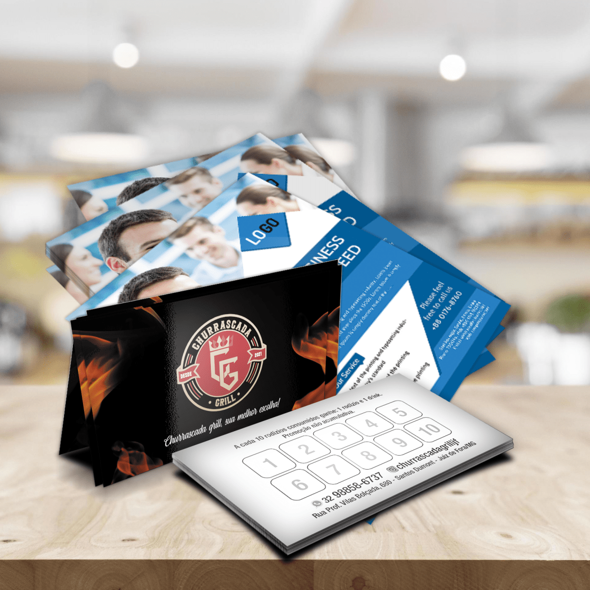 - 1000 cartões de visita, tamanho 9x5cm, colorido frente, verso em preto e branco, fabricado em pepal supremo 250g, verniz total frente.