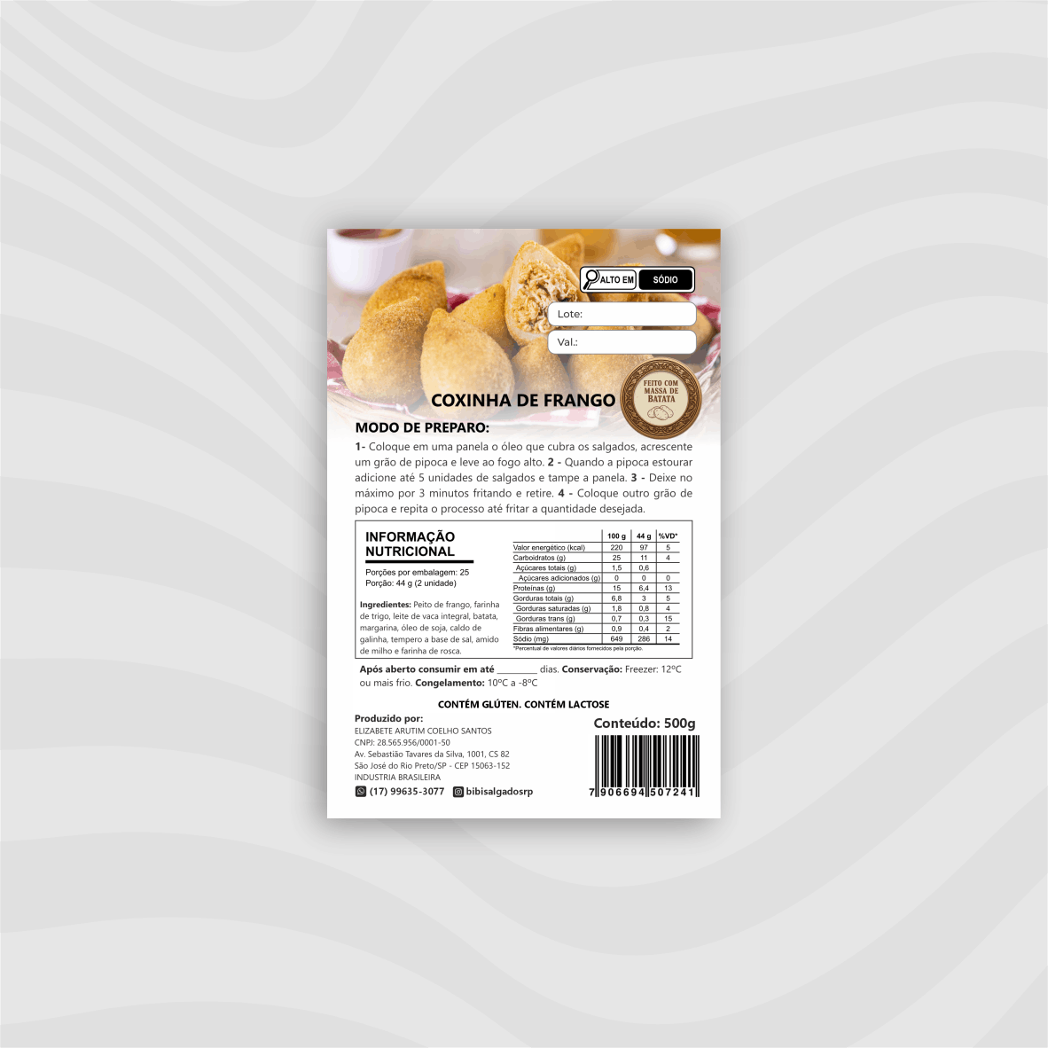 * Todas as informações para criação da arte devem ser fornecidas pelo cliente. Não criamos tabela nutricional e código de barras.